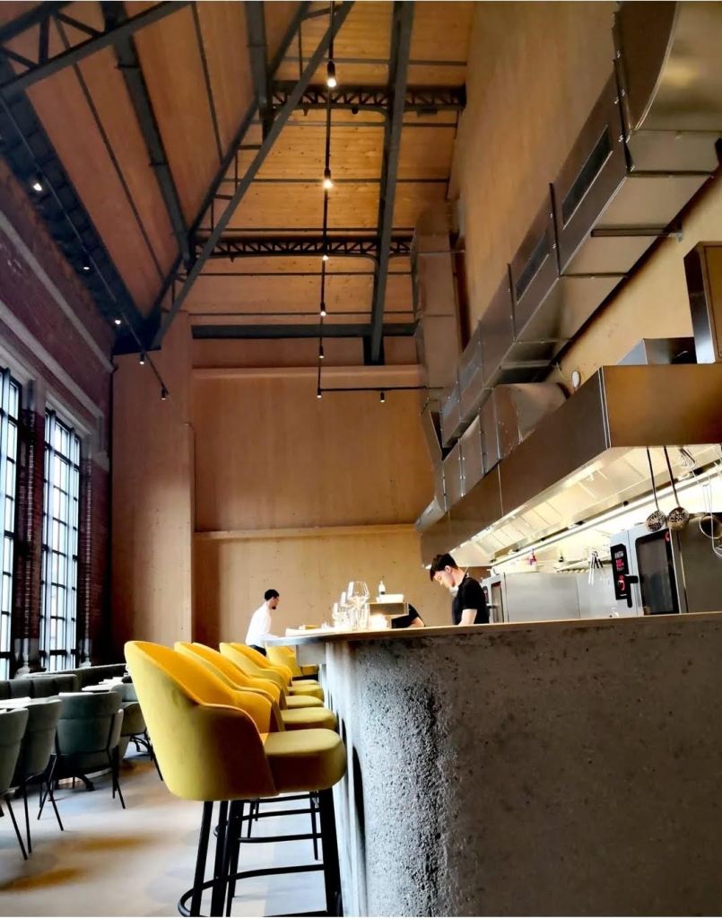 Le lieu, tout d’abord. La Gare maritime fait partie des plus belles réhabilitations de la capitale (avec le Mix). Ancienne gare de fret, elle a conservé sa structure métallique et ses grandes surfaces vitrées et accueille notamment le plus grand food market d’Europe. A l’opposé de cette halle gourmande, pile poil face à l’ancienne Maison de la poste, San Degeimbre a déniché l’endroit parfait : un espace spacieux sur deux niveaux qui sied parfaitement à sa nouvelle proposition culinaire. Pour une expérience plus immersive, on vous conseille le premier étage, ouvert sur la cuisine et baigné de lumière naturelle.