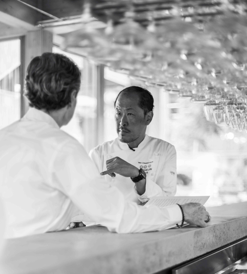 Si San Degeimbre est bel et bien à l’origine de Correspondance, ne vous attendez cependant pas à le croiser ici. Le chef doublement étoilé est le plus souvent à l’Air du temps (**) à Liernu, où il fait rayonner son talent. Pour le projet de Correspondance, San a confié les rênes de la cuisine à Louis de Brouwer, son second à la tête de tous ses projets, tandis que Philippe Lamourette, ex maitre d’hôtel chez Vertige et membre du clan Degeimbre, gère la salle avec brio. Bref, vous pouvez y aller les yeux fermés.