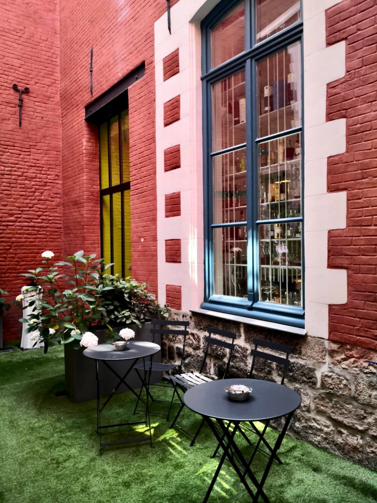 Côté ambiance, on salue un mix parfaitement dosé entre écrin confidentiel et spot urbain. A l’arrière du bâtiment, un petit coin de verdure inattendu fait son grand effet : terrasse, mini bassin à koi, jardin d’herbes aromatiques, et même une porte dérobée qui mène… à l’église Sainte-Catherine qui semble veiller sur l’hôtel.