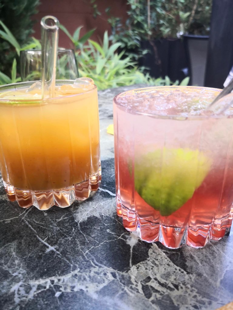 C’est l’été, direction la terrasse : luxuriante, fleurie, exotique, avec son filet d’eau, ses nénuphars et Ganesh en vigie bienveillante. On démarre avec deux cocktails aux noms évocateurs de l’Inde : Bollywood, gin et grenade, et Namaste, rhum brun au tamarin – le fruit acidulé du tamarinier nous téléporte au pays des saris chatoyants. Plus qu’un air de vacances.