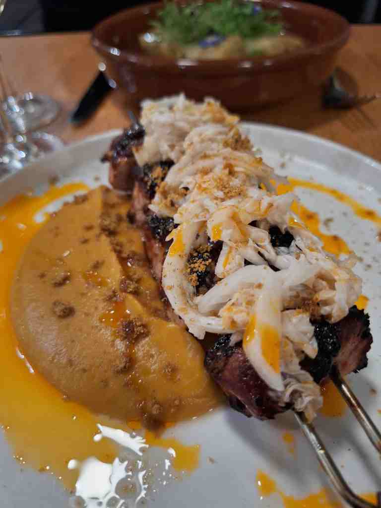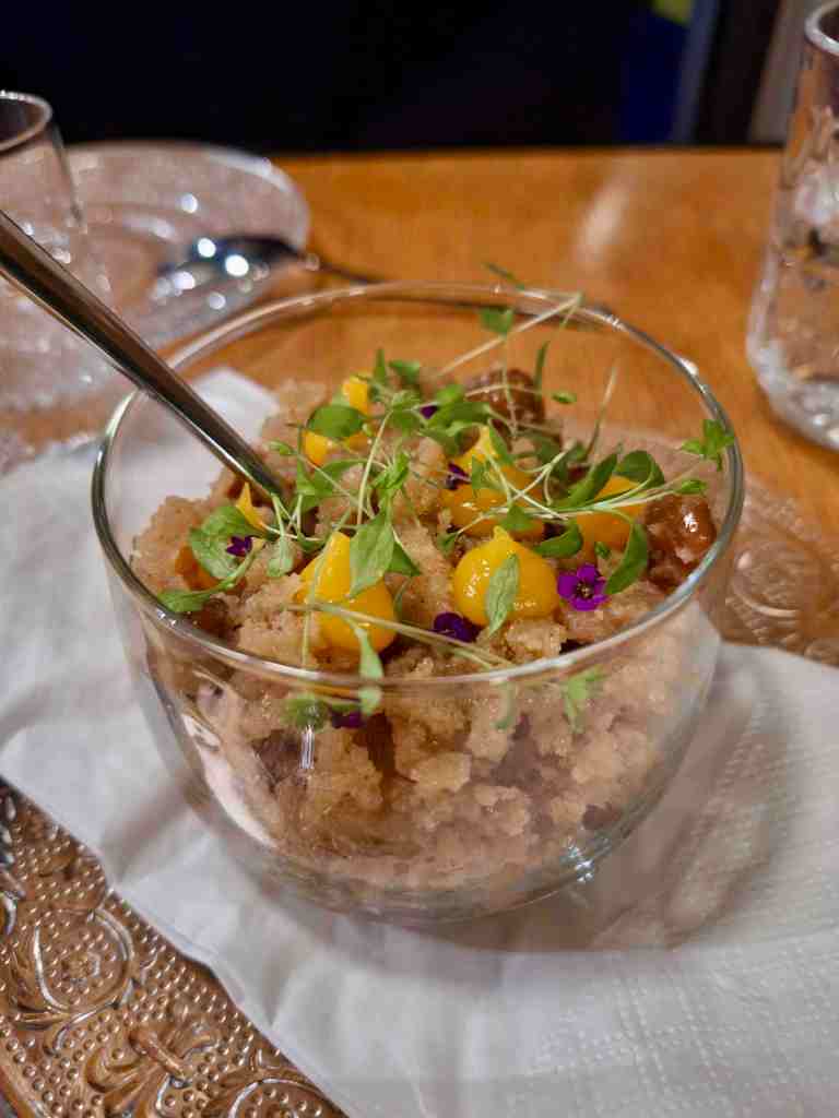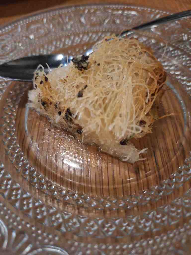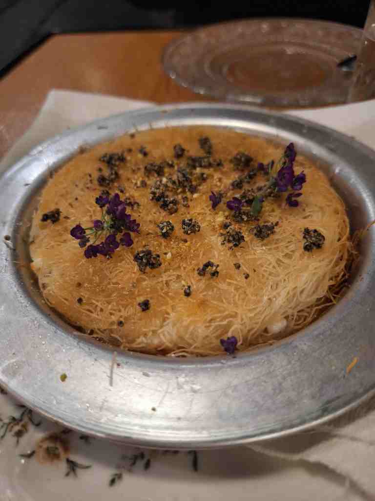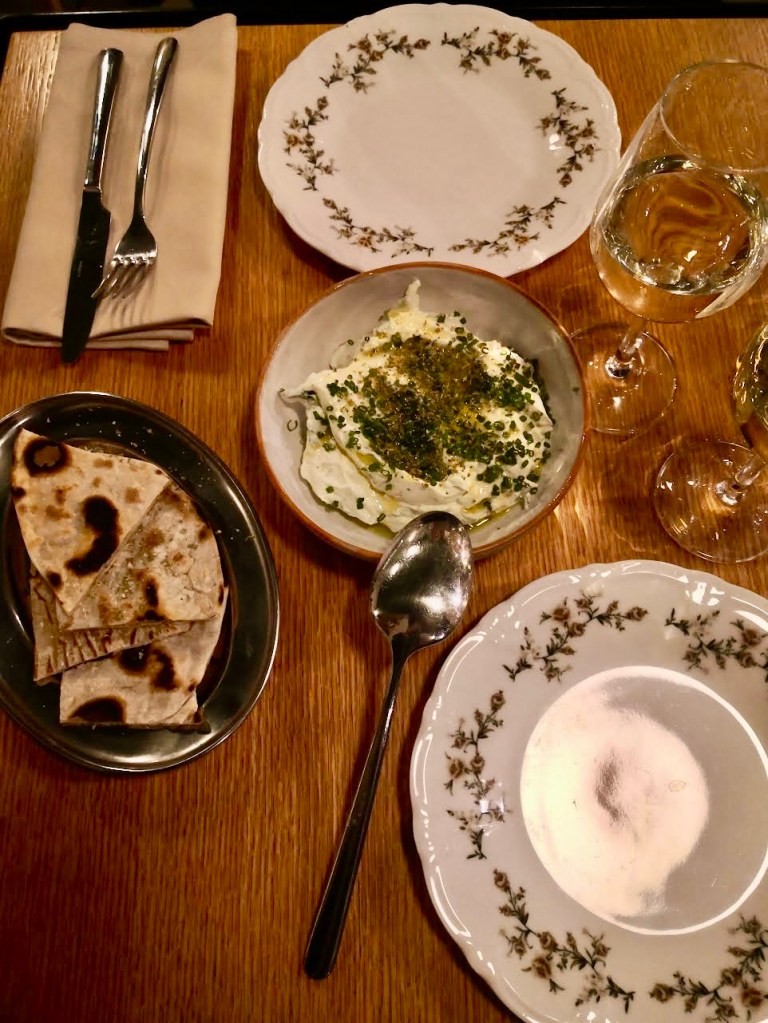 Ce soir-là, dans nos assiettes : un tzatziki maison, simple et savoureux ; un chou farci ultra-réconfortant pioché sur l’ardoise ; et un souvlaki (une brochette) boosté par une purée de patates douces, du chou mariné et un glaçage curry-caramel. Une petite bombe. Surtout, ne zappez pas les desserts : un kunefe fondant (kadaïf, fromage, pistache) et un halva en version semoule parfumé à la mandarine. Addictifs. Dans nos verres ? Un excellent Malagousia du domaine Avantis Estate, un producteur réputé. Blanc monocépage, aromatique et charmeur, quelque part entre le viognier et le soleil de l’ile d’Eubée. Chaleureuse soirée.