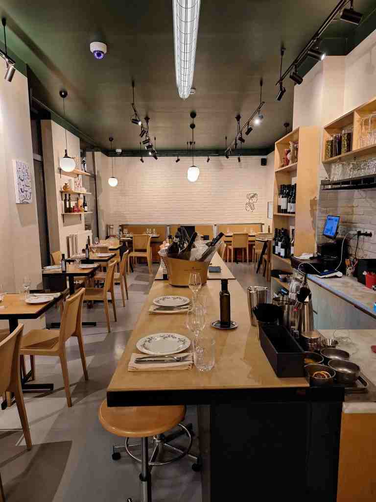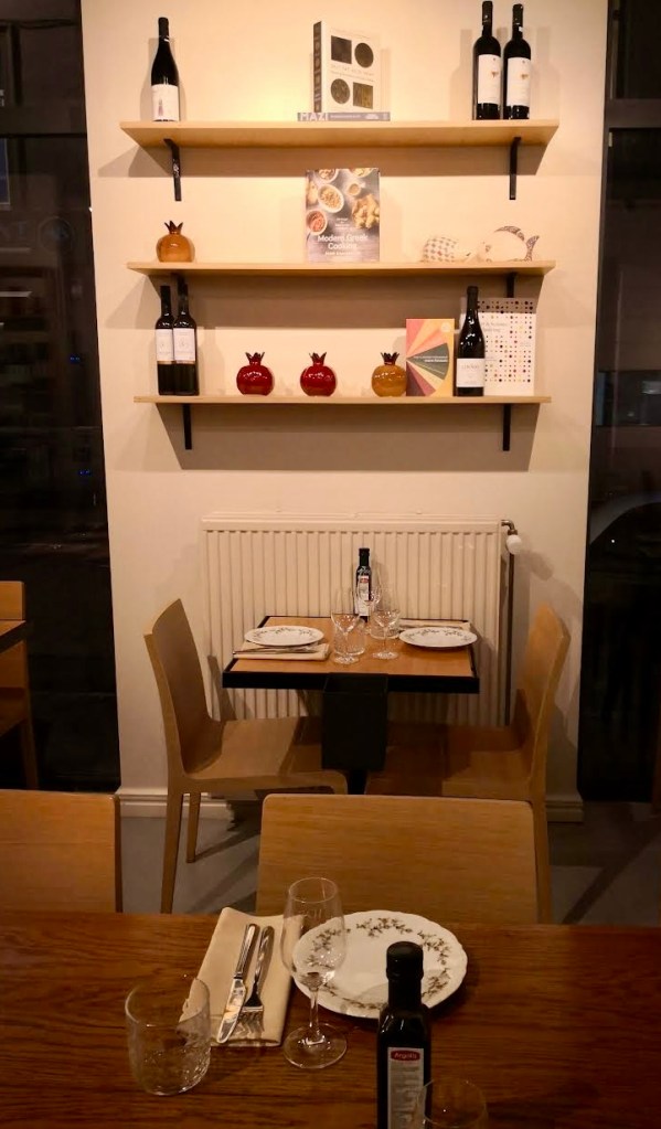 Côté déco, Costantinos a confié les clés à une spécialiste du stylisme de restaurants. Résultat : un bistrot élégant et lumineux, murs clairs, mobilier en bois blond, jolies assiettes, verres gravés Idea, serviettes en tissu. Sobriété maîtrisée, sans effet de manche, à mille lieues du kitsch péplum/colonnes en plâtre/Acropole peinte qui avait fini par nous fatiguer.