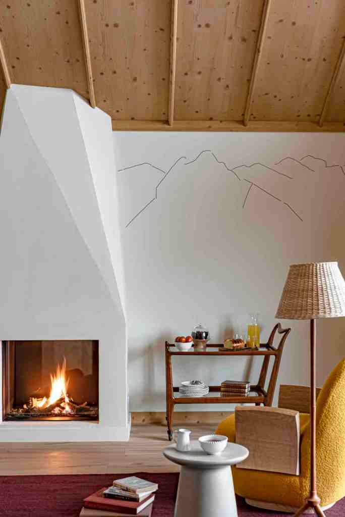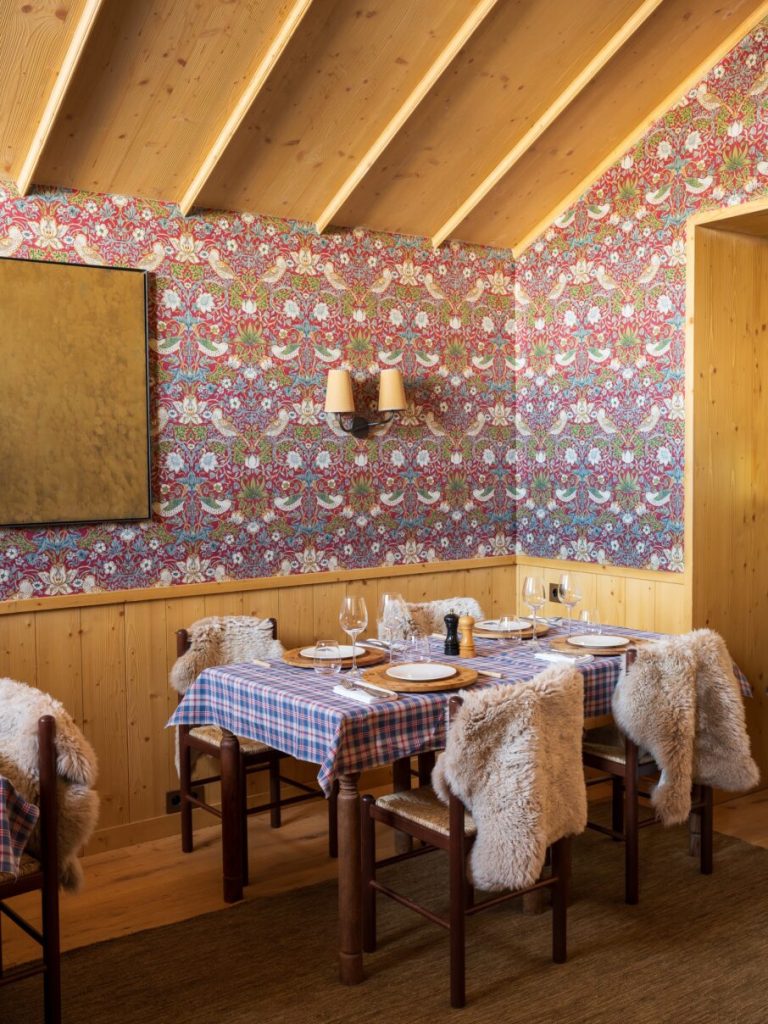 Membre des Maisons Pariente (clan hôtelier qui compte déjà Lou Pinet à St-Tropez et le Grand Mazarin à Paris), Le Coucou joue les gros calibres à flanc de montagne. Ce chalet monumental de 55 chambres et deux appartements privés, étiré sur dix étages, pourrait facilement sombrer dans le tout-folklorique. Très peu pour l’architecte d’intérieur Pierre Yovanovitch. Ce Parisien est allergique au pastiche. Plutôt que de singer le chalet de carte postale, il préfère la friction des styles : les codes alpins passent à la moulinette contemporaine, légèrement de biais. Dans les espaces communs aux volumes XXL, des suspensions en verre jouent les glaçons géants, la moquette esquisse des flocons graphiques, le mobilier chiné taille la bavette aux pièces sur mesure.